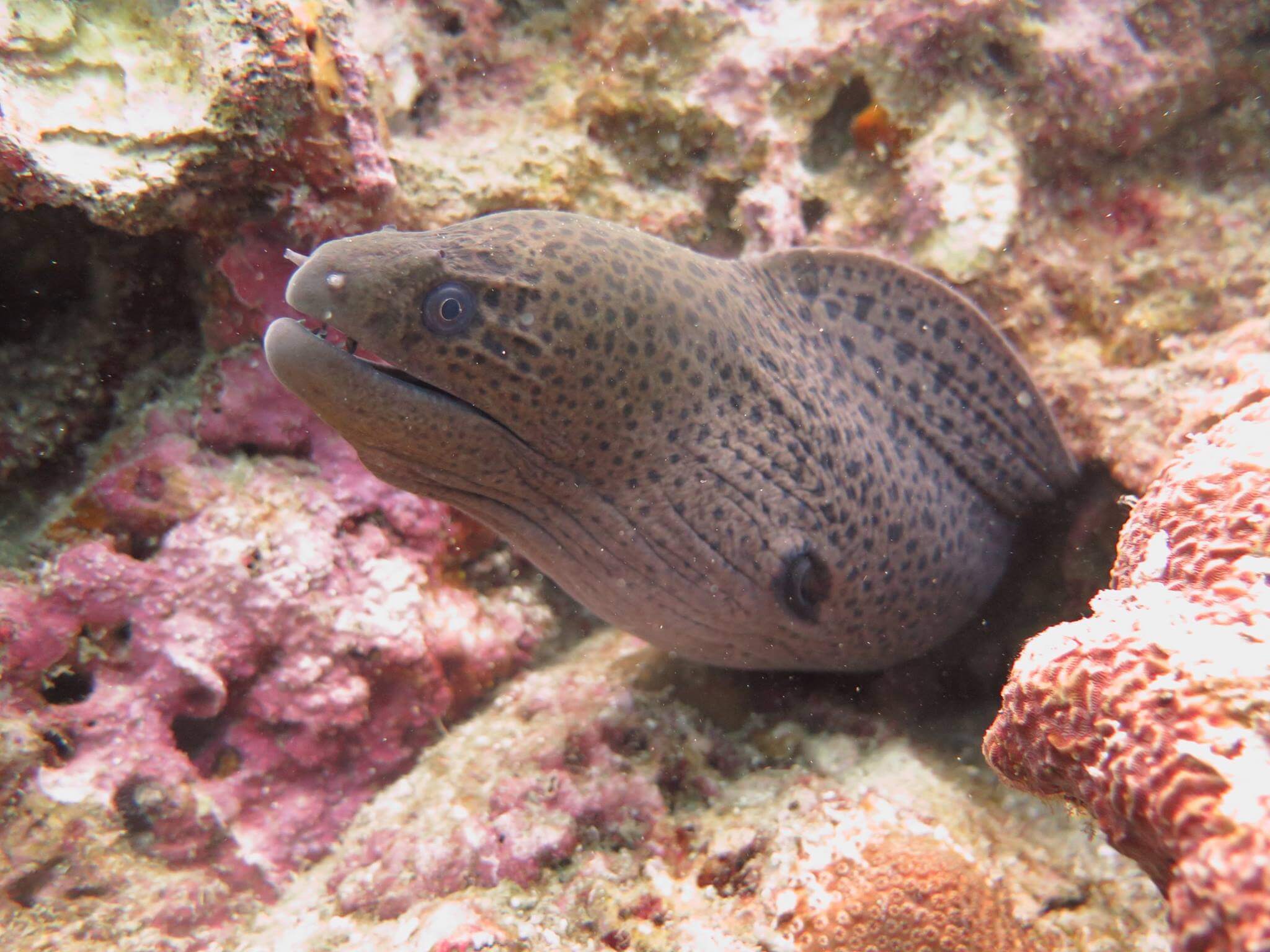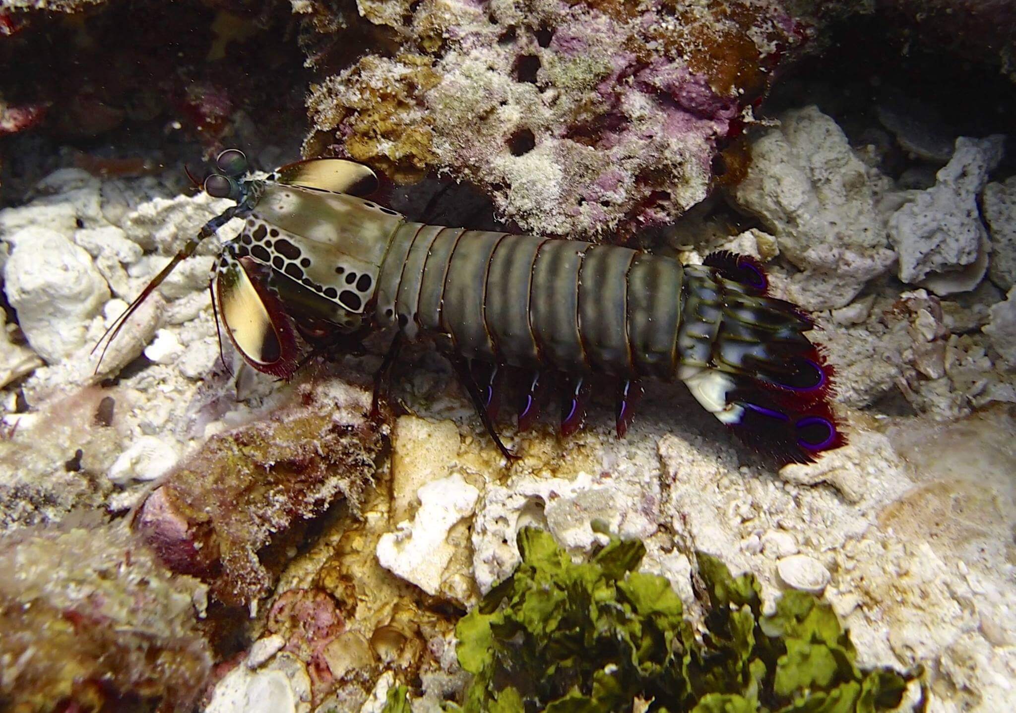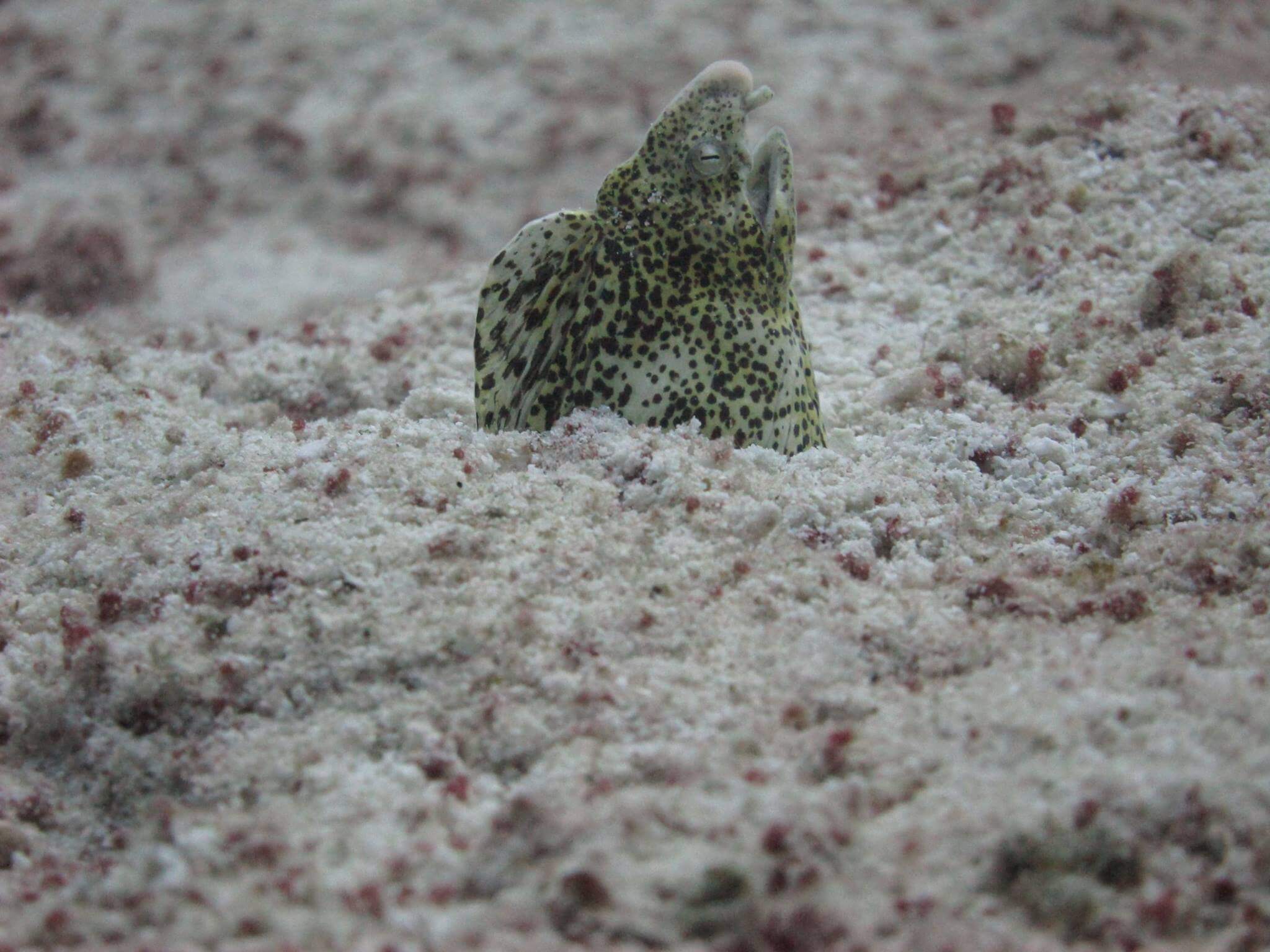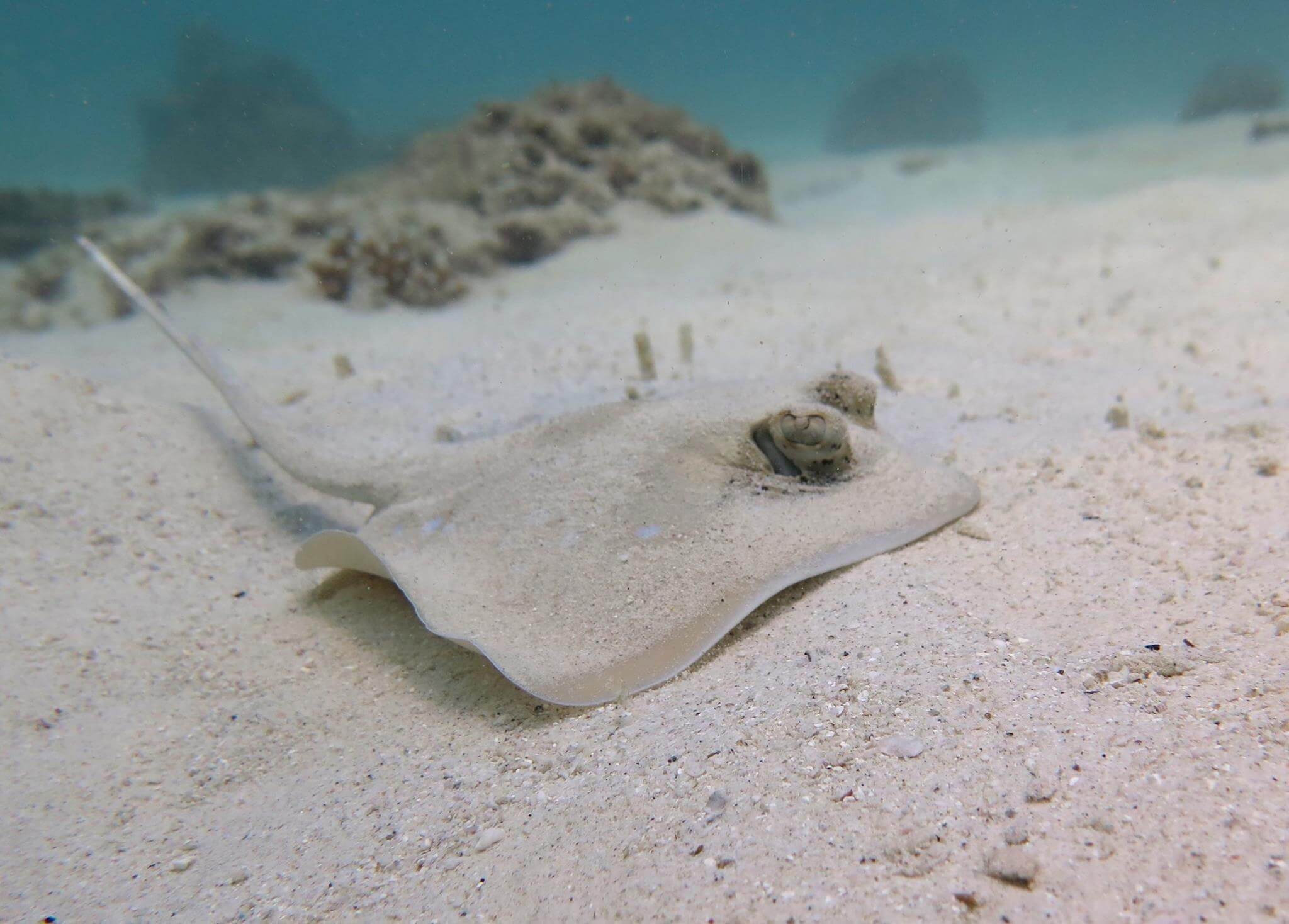 One of the best places to find Kuhl’s Stingrays which can be found hiding in the sand along the peacock flounder. Parrotfish, triggerfish, butterfly fish and barracuda are common to these waters. Turtles, Octopus and cuttlefish also make an appearance here. Dives here have also produced some good unusual and rare marine life including some large stonefish, flathead crocodile fish and some lovely colored nudibranchs so keep your eyes peeled whilst diving here.