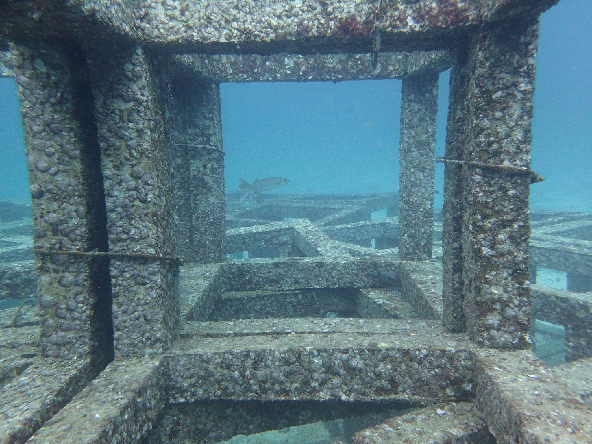 There are a few man made monuments in the center of the bay depicting two elephants and a big temple gate guarded by a mythical giant sentry, known in Thai as Yak, who is believed to protect the gate from evil spirits. These statues are situated between 18 and 20 metres and should be the dropping point for the start of the dive. They are marked by a mooring line and should be relatively easy to locate.