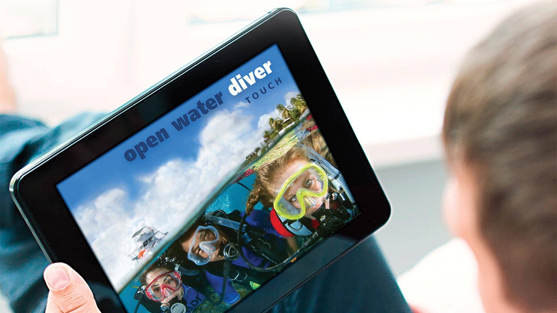 The PADI Open Water Course theory can be done in several different ways. Firstly you can do the full PADI Open Water theory online with the online PADI Open Water eLearning. PADI’s eLearning is a fully interactive course that can be done on a computer, smartphone or tablet. Alternatively, you can watch the training videos at home, complete the required knowledge reviews, and complete the exams with your PADI instructor.